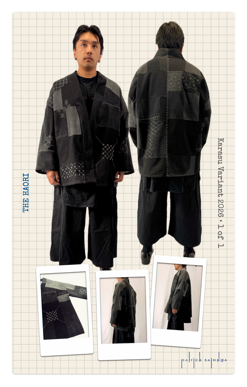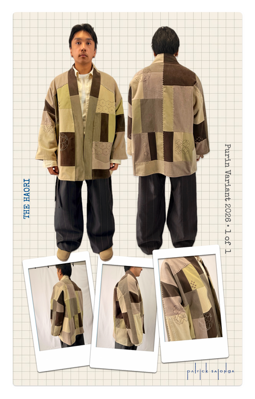 Crafted from reclaimed vintage fabrics and finished with hand-stitched sashiko. It carries history while defining our future. Effortless, enduring, unmistakably ours.